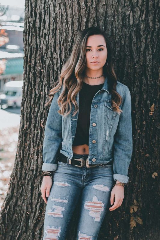 Хорошо будут смотреться джинсы с отделкой или потертостями.