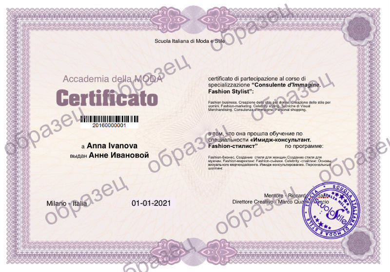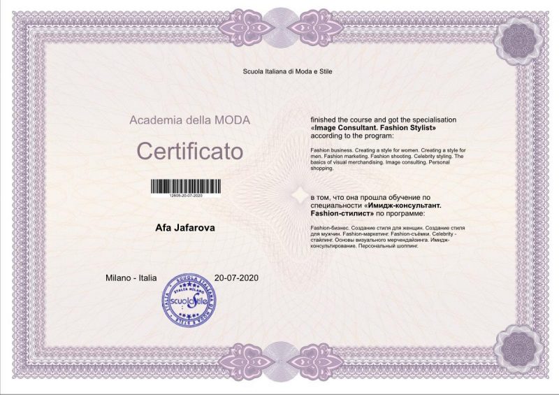 Вы получите сертификат европейского образца и гос диплом по профессии имидж-консультанта и fashion-стилиста по всему миру.